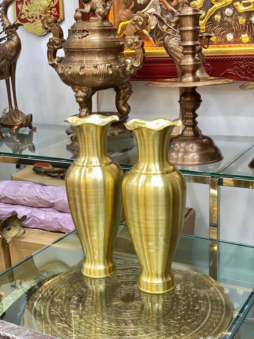 Đôi Lọ Hoa Trơn Bằng Đồng Cát Tút Cao 38cm là lựa chọn lý tưởng cho những ai tìm kiếm một sản phẩm vừa đẹp về hình thức, vừa có chiều sâu về giá trị văn hóa – tâm linh. Đây không chỉ là vật phẩm phục vụ cho thờ phụng, mà còn là biểu tượng cho sự tinh tế trong gu thẩm mỹ của gia chủ.