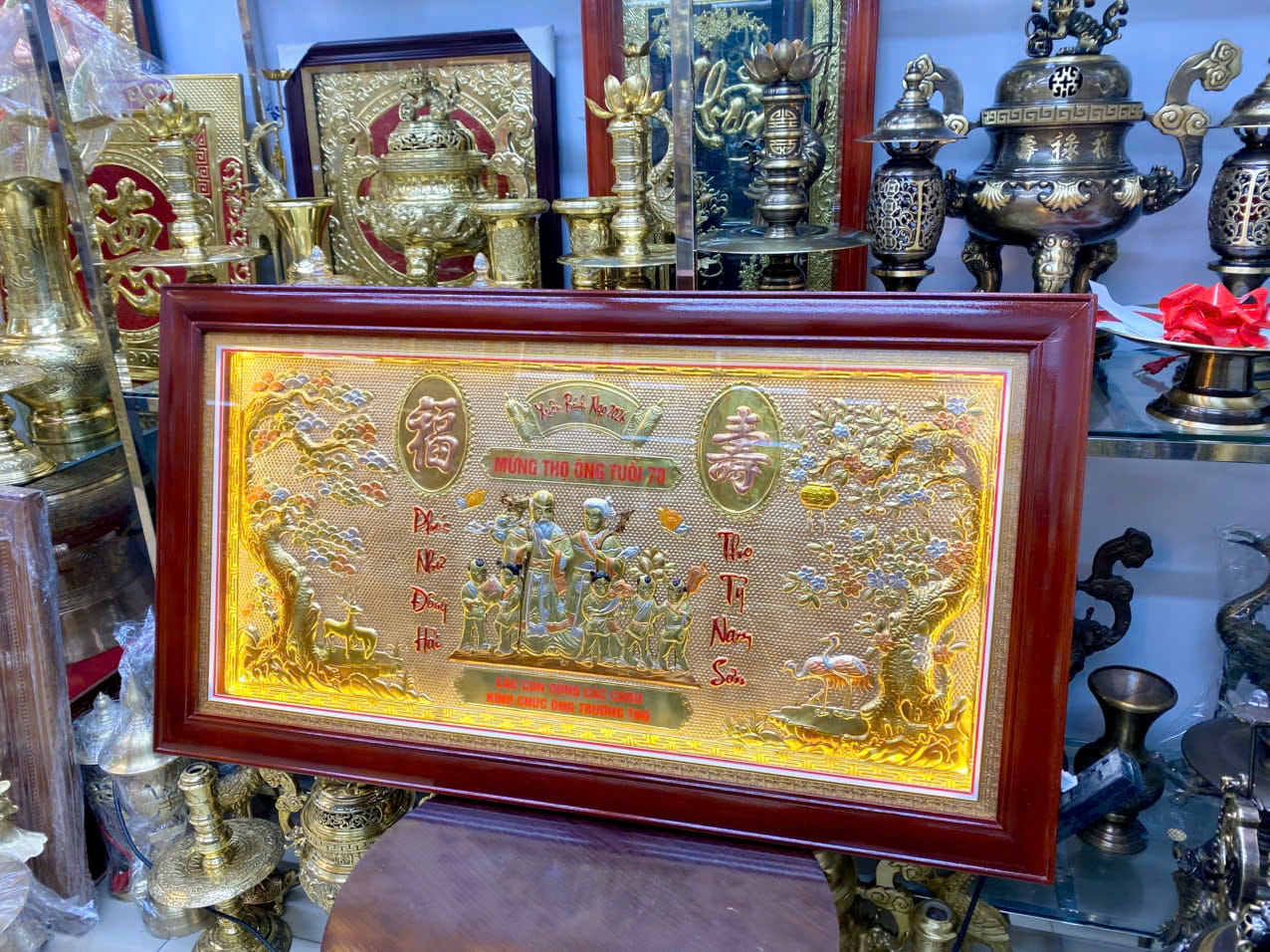 | Tên sản phẩm | Tranh Mừng Thọ Ông Bà Bằng Đồng Nguyên Tấm Nền Vàng |