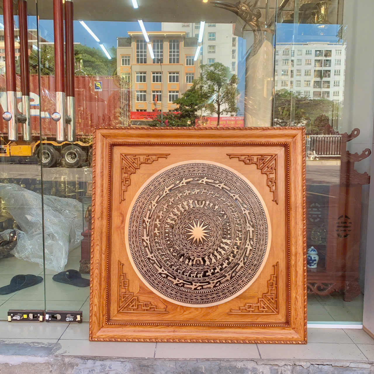 Tranh Trống Đồng Đỏ Đúc Đóng Khung Gỗ Hương (88×88cm) còn là món quà tặng cao cấp, phù hợp trong các dịp tân gia, khai trương, kỷ niệm, tri ân hoặc dành tặng đối tác, lãnh đạo. Một tác phẩm vừa mang giá trị nghệ thuật, vừa chứa đựng ý nghĩa lịch sử – phong thủy sâu sắc, thể hiện sự tinh tế và trân trọng của người tặng đối với người nhận.