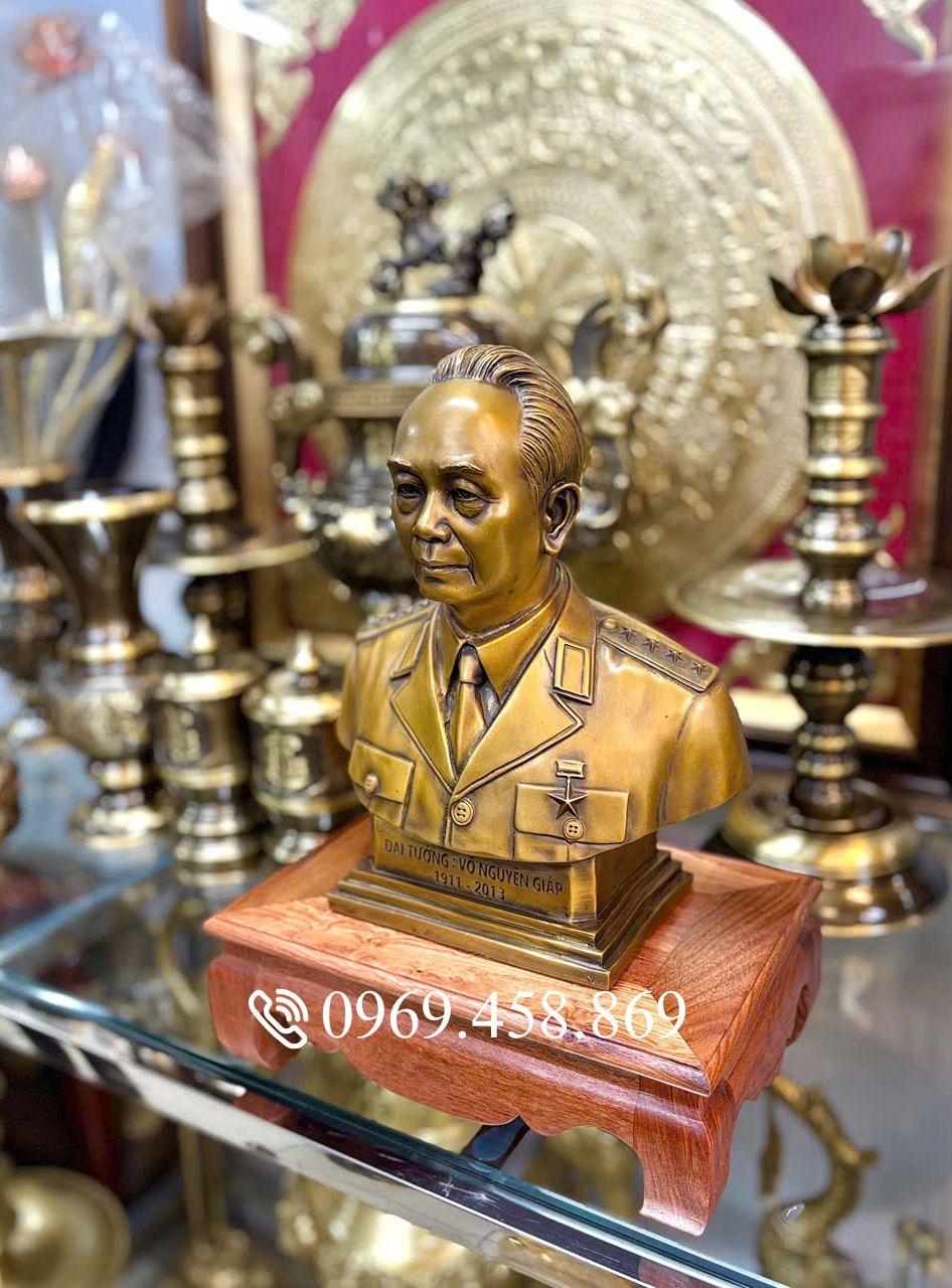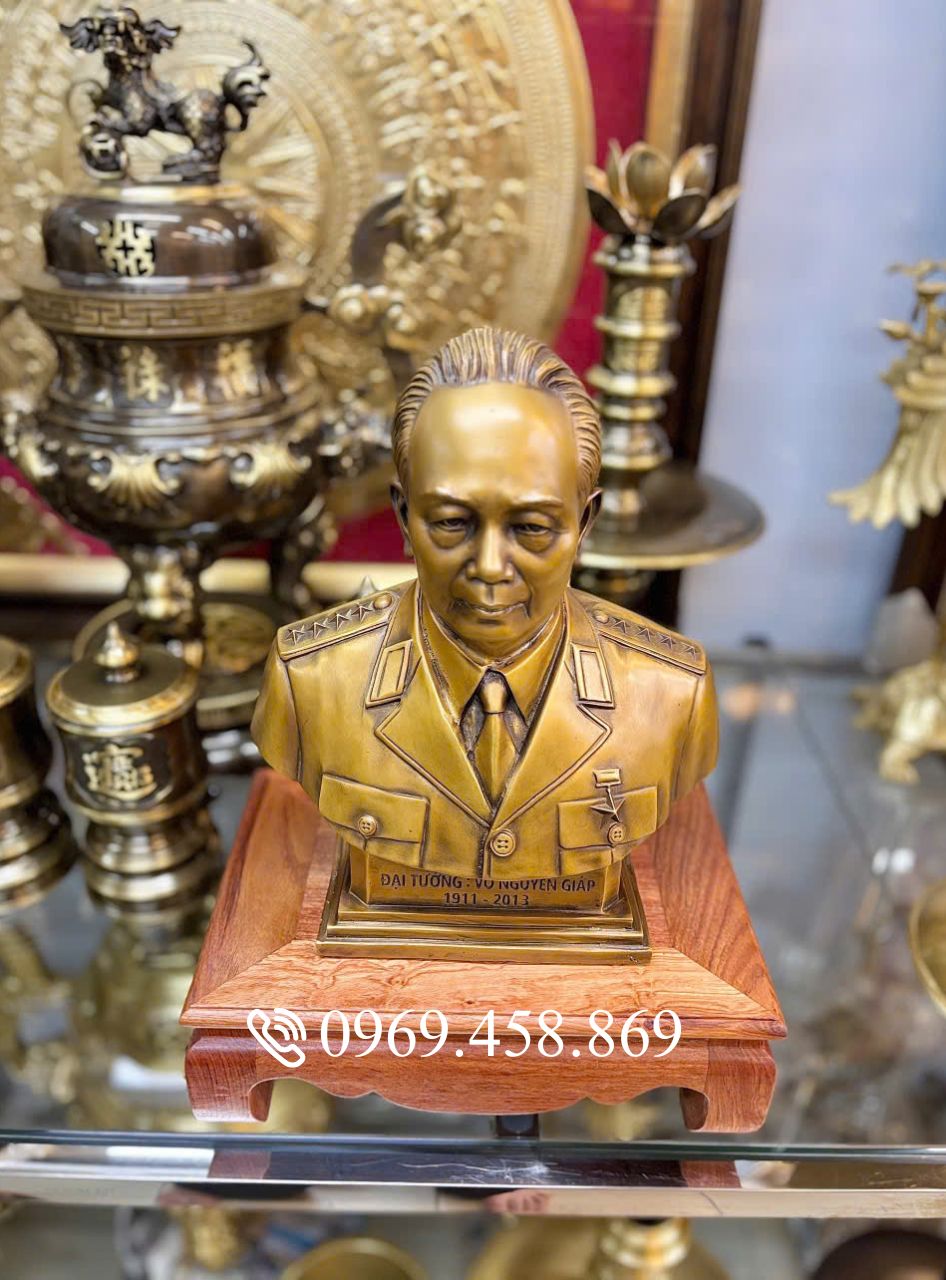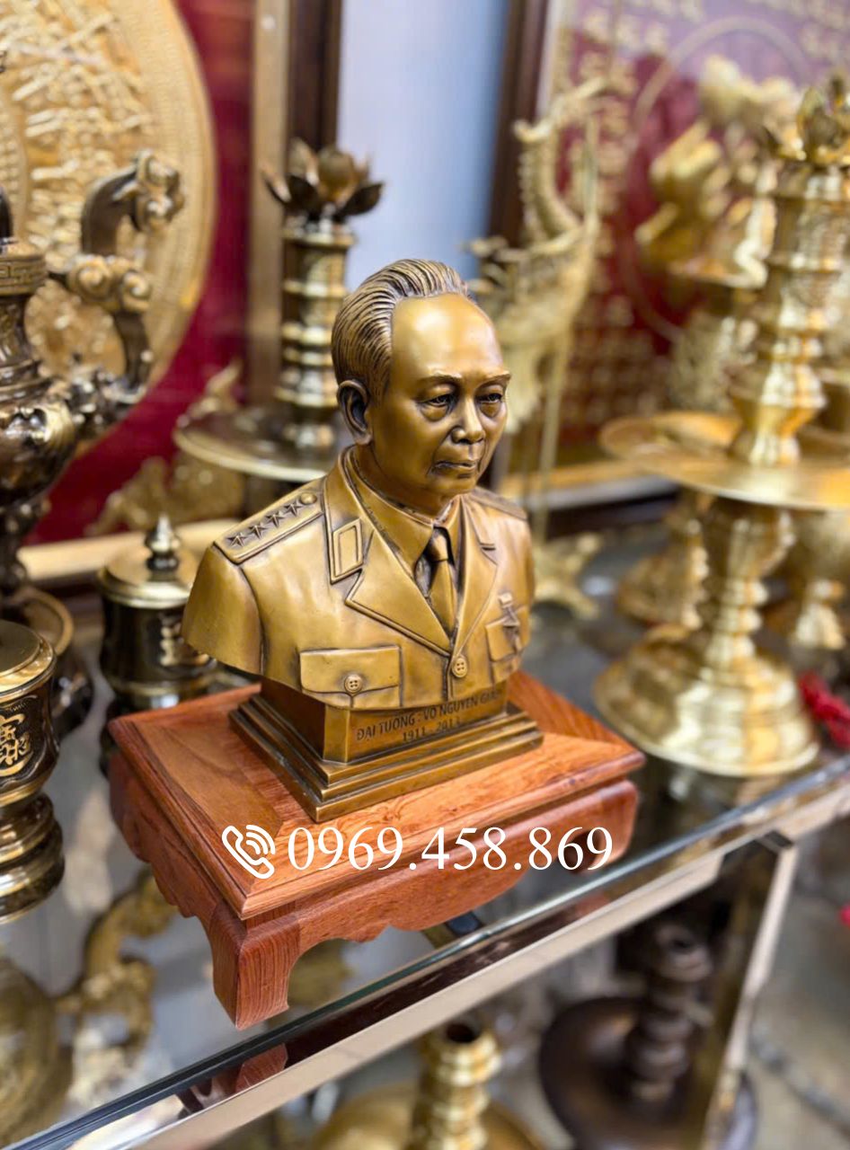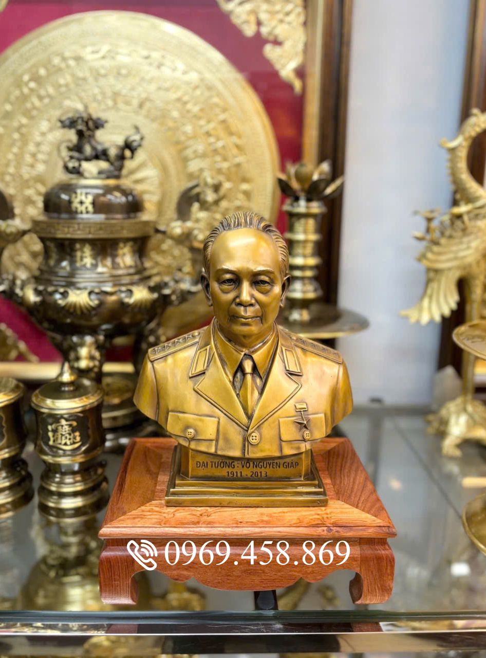 Trong dòng chảy của lịch sử Việt Nam, Đại tướng Võ Nguyên Giáp không chỉ là một vị Tổng tư lệnh lỗi lạc mà còn là biểu tượng của trí tuệ, nhân cách và lòng yêu nước nồng nàn. Để tri ân những đóng góp vĩ đại của “Người anh cả” quân đội nhân dân Việt Nam, các nghệ nhân đã dồn hết tâm huyết để tạo nên pho tượng Bán thân Đại tướng bằng đồng thau cao 31cm – một tác phẩm hội tụ đủ sự uy nghiêm, tinh tế và hồn cốt dân tộc.