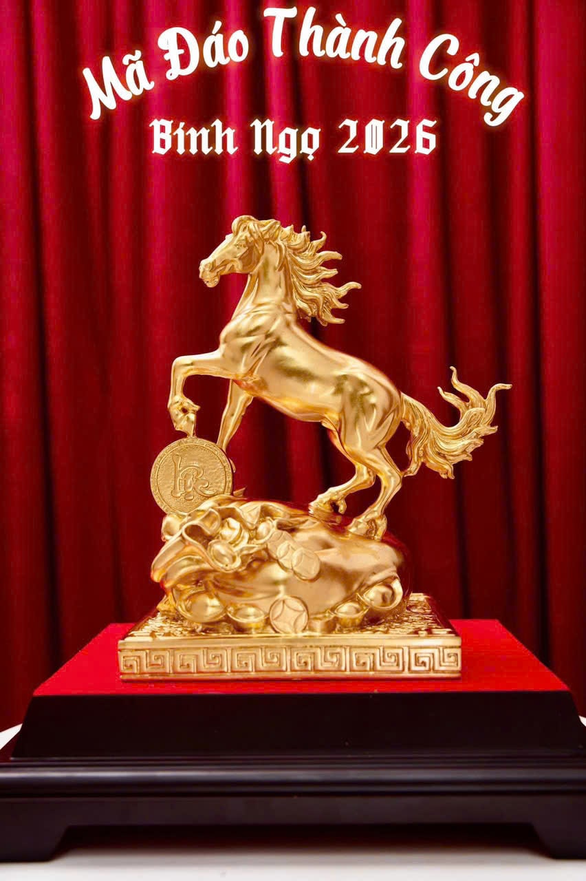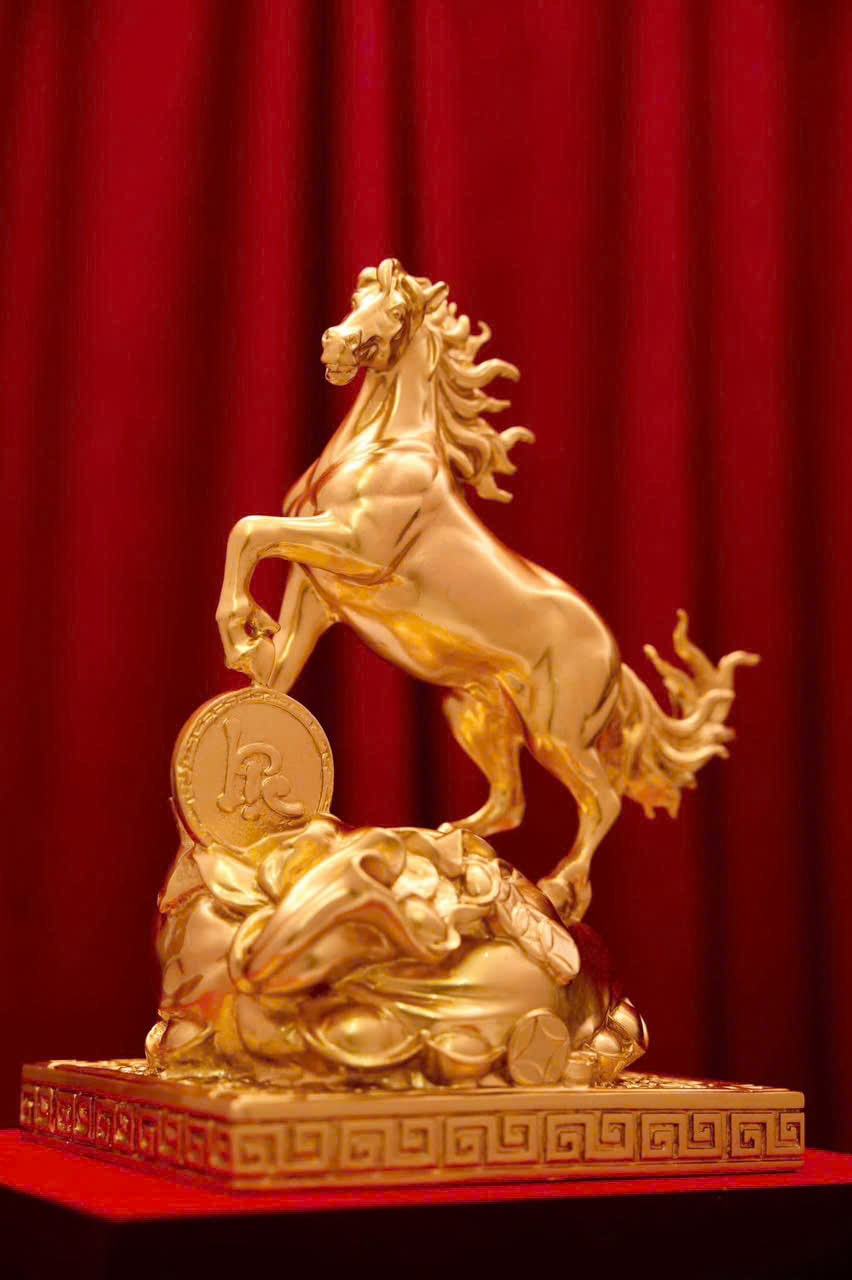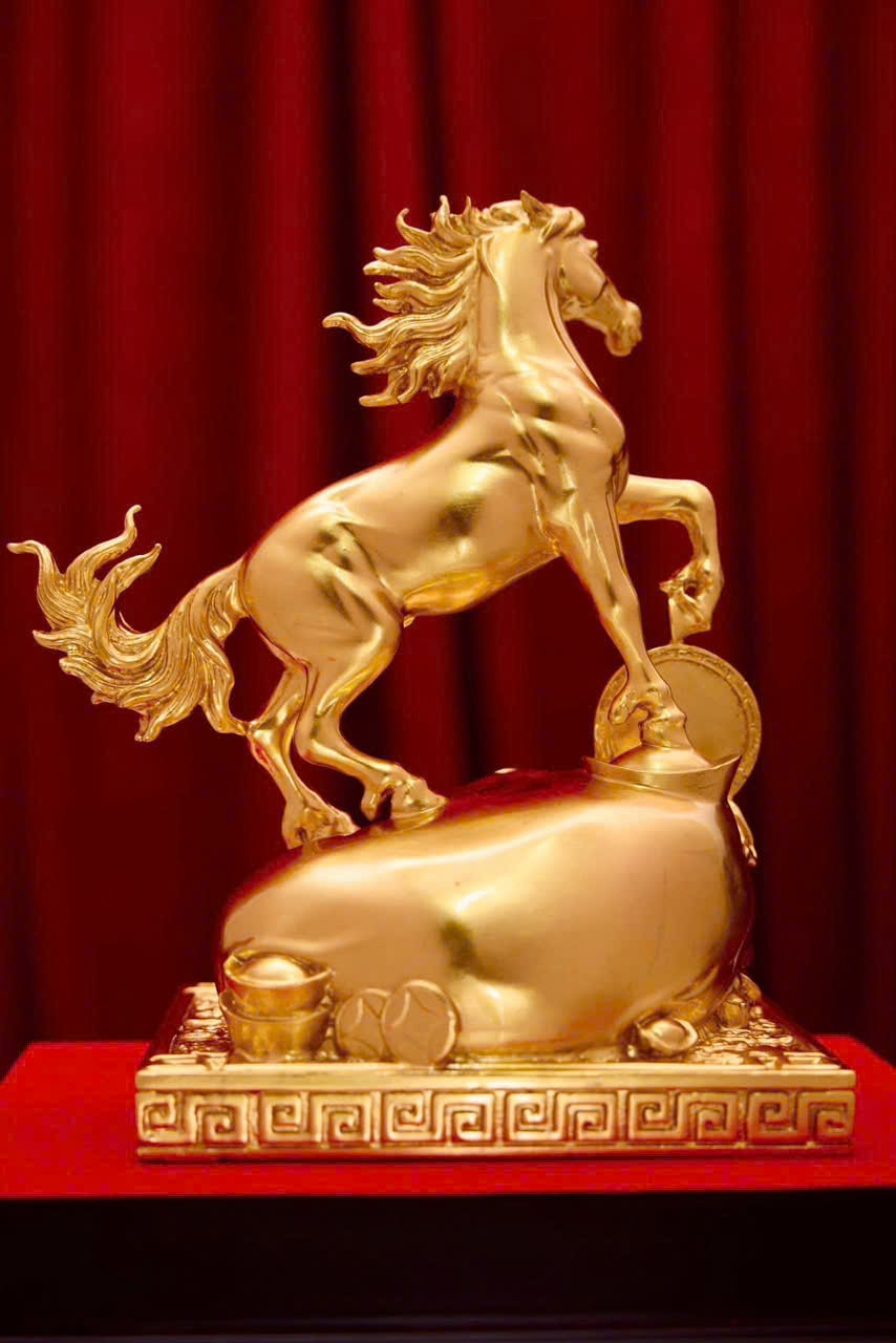 Tượng Ngựa Xu Tiền Lộc Dát Vàng 9999